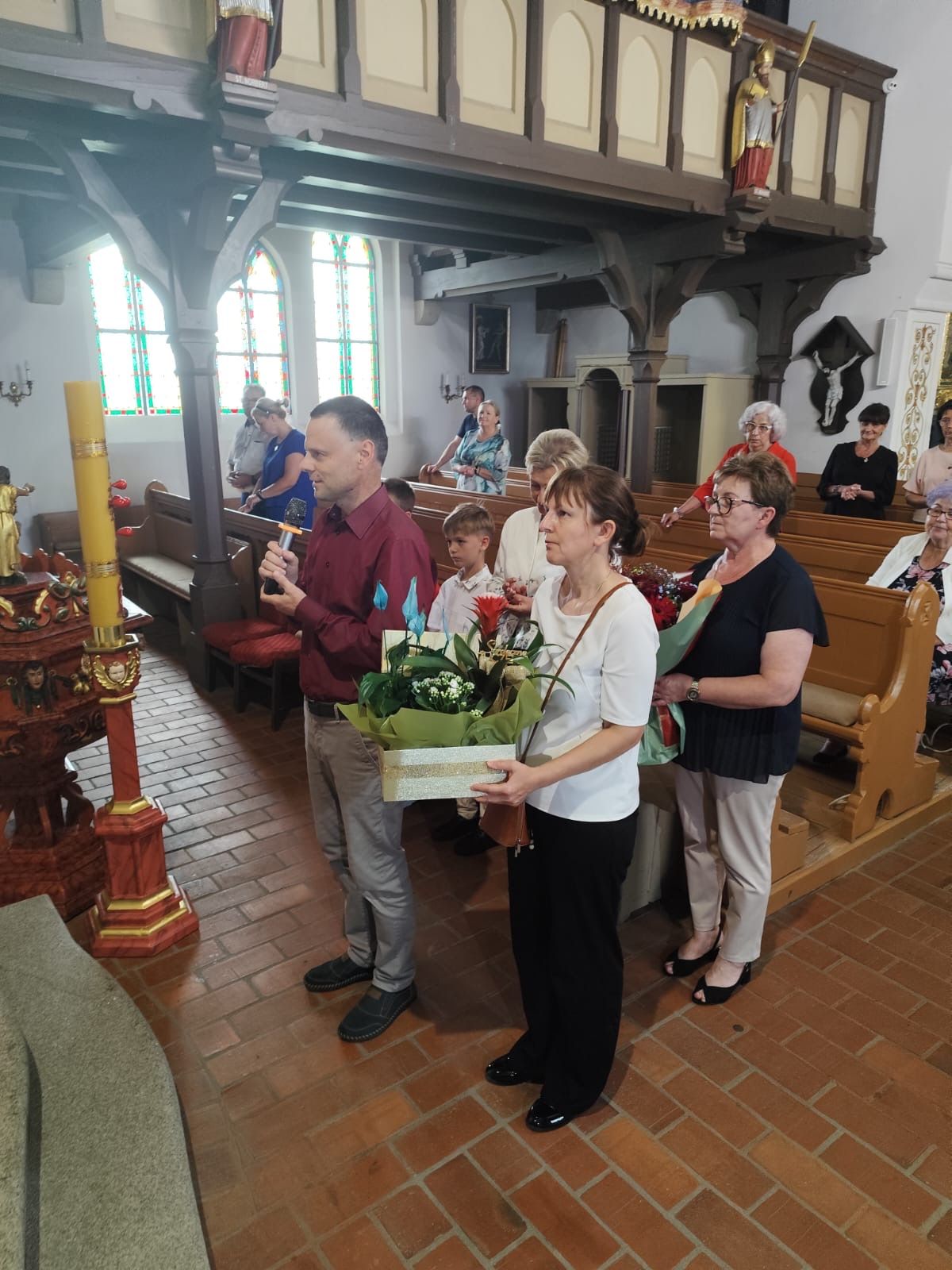 Uroczysta Msza Święta zgromadziła licznie parafian oraz gości, którzy wspólnie modlili się za solenizanta, polecając Bogu jego kapłańską posługę i codzienne życie. Po zakończonej Eucharystii przedstawiciele wspólnot parafialnych złożyli ks. Proboszczowi serdeczne życzenia, dziękując mu za jego oddanie, modlitwę i troskę o naszą parafię.